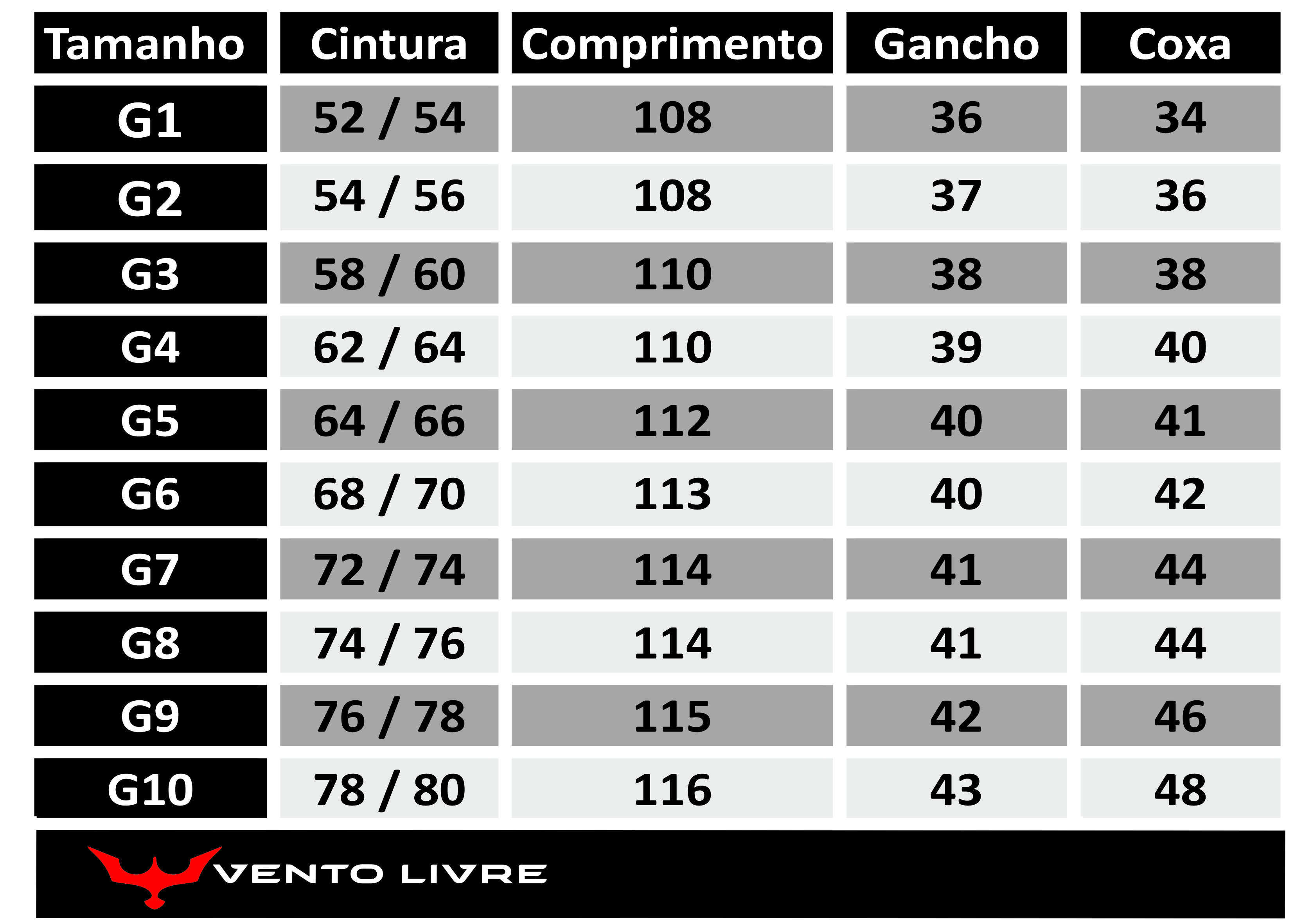 Grade de tamanhos